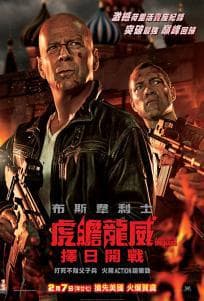 「二十世紀霍士影片」榮譽呈獻,2013最強賀歲荷里活超級猛片──《虎膽龍威:擇日開戰》(A Good Day to Die Hard),布斯韋利士飾演的「經典爽辣英雄」尊麥堅,再創新猷勁爆回歸;荷里活首屈一指動作導演尊摩亞更親自執導,加上《通天奇兵》大編劇家緊張刺激過癮的情節,令是次《虎膽龍威》系列的第五部作品,火爆十足,絕對不能錯過! 尊麥堅一向與廿歲出頭的兒子「小尊麥堅」關係疏離,但作為他的父親,無論怎樣棘手惡劣,面對逆戰時也會撐到盡,殺到底!兒子在東歐闖下大禍,疾惡如仇的老尊第一時間飛奔到莫斯科,結果冷不勝防下,被當地恐怖份子綁架──事件竟與發動第三次世界大戰有關!為防全球發生不可收拾的動亂,兩位尊麥堅同心並肩協力,再一次成為拯救世界的新英雄!