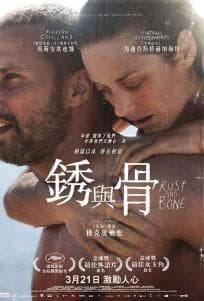 《銹與骨》榮獲康城金棕櫚獎、金球獎最佳外語片及女主角提名等殊榮,由奧斯卡最佳外語片提名電影《先知》導演積克奧迪雅執導,金像影后瑪莉安歌迪娜主演。 失業漢亞裏(馬提亞斯桑納斯 飾)要獨力承擔起撫養五歲大兒子森的責任,他身無分文、居無定所,要與幼子相依為命實在束手無策,唯有投靠住在法國的姐姐安娜。得到姐姐的幫助,一切亦開始漸入佳境。亞裏在當地一家夜店當保鏢,間中更會打黑市拳,為了生活出賣血與汗。一晚夜店發生打鬥,他在混亂中遇上了一位名叫詩締(瑪莉安歌迪娜 飾)的美麗女子,面對冷若冰霜的詩締,亞裏還是坦率冒昧地留下了聯絡電話給對方,盼望有機會再與她見面。但亞裏萬萬想不到,當他終於等到詩締來電時,傳來的卻是個令人震驚的消息:任職殺人鯨訓練員的詩締在一次表演中發生意外,失去雙腿,更失去了自己的夢想……亞裏並沒有以同情和憐憫的態度看待詩締,不容許她在自怨自艾中沉淪,逼使她振作重新尋回自我,而詩締的堅強亦改變了亞裏。兩個截然不同的人在人生中迷失絕望的時候遇上對方,卻同時成為了令彼此重生的力量…… 香港會展中心CE1 18/3(一)9:45pm CE1 19UL3E1 19/3(二)7:15pm UA朗豪坊 UL