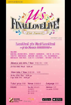 終於要同 μ’s 忍著淚說goodbye喇。。。 μ’s最後演唱會《LoveLive! μs Final LoveLive!〜μ’sic Forever♪♪♪♪♪♪♪♪♪〜》將於2016年3月31日及4月1日舉行,the sky、海運戲院、嘉禾荃新天地、嘉禾黃埔將會直播!各位LoveLiver,唔好錯過同μs大合唱嘅最後機會!