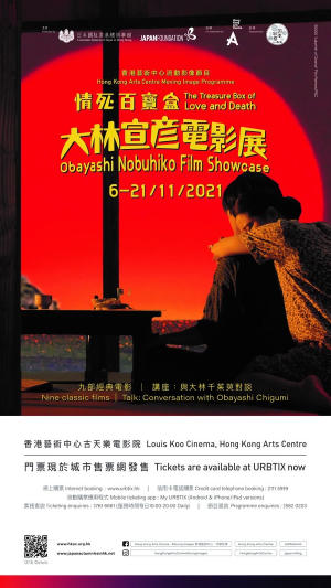 《電影百寶盒》 「世界和平!」 日本 | 2019 | 179’ | 日語對白,英文字幕 | DCP | 彩色 21/11 (日) 2pm 2019 東京國際電影節特別功勞賞 2020 加拿大奇幻電影節影評人協會電影獎 2021 《電影旬報》年度最佳導演 海邊電影院的最後一夜,正要放映日本戰爭片專輯,電影少女和三個觀影少年被吸進銀幕世界,遇上宮本武藏、坂本龍馬和新選組,在一捲捲菲林中經歷動亂與戰爭。大林宣彥的天鵝之歌,既是他創作主題與風格的集大成,亦盛載他對電影和戰爭的思考,以至成長的記憶。由故鄉尾道出發,用詼諧的舞步探索歷史迷宮,把影像實驗做到生命的盡頭,呈獻一包羅萬象的電影百寶盒。