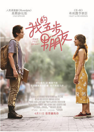 <我的五步男朋友>福評:這是一套十分動人的電影,個人認為是需要入場支持及會感動人心的,故事除了講述一對患病男女的動人故事之外還提及罕見的疾病「囊腫性纖維化」(Cystic fibrosis)的關注,更加提及到早年患病者的辛酸及給予他們動力去與病魔戰鬥。故事其實簡單,講及男女主角都是患上罕見肺病的病者,他們住在同一所醫院, 漸生情愫,亦被雙方的切身處境及背景而感動,同病相憐。個人非常欣賞導演及編劇在同一所醫院中每一個場景都是男女主角愛情的小聚腳點,電影之動人之處在於女主角Stella為所有病者都賦予同情及憐憫,而她亦是病患者但卻是最堅強的一位;另外片中帶出不少患者疾病的悲慘之處,稍不留神便會喪命,亦恐怕互相感染所以不可能作任何身體接觸,愛情中只能遠觀但不可接觸卻是一個最遙遠的距離,從來所有愛情故事都是會有悲憫的片段,很欣賞男女主角互相為對方加油以作一些窩心的小禮物及小把戲,把觀眾帶回了初心及初戀的純真。另外因為不想劇透的關係,只Highlight 推介觀眾留意在泳池的一幕、生日的一幕及結尾的一幕實在令人感動萬分!有不少觀眾都留下真摯的眼淚的眼淚!福分:90分