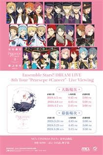 「偶像夢幻祭!! DREAM LIVE -8th Tour “Praesepe #Cancer”-」4月5至7日INTEX Osaka (大阪府)公演及5月24至26日Makuhari Messe International Exhibition Hall (千葉縣) 公演分別 #三場夜間場次,將於MCL Cinemas Plus+ Plaza Hollywood舉行現場直播! 大受歡迎的偶像製作遊戲《偶像夢幻祭!!》的虛擬演唱會第8次巡迴,將由 Trickstar、ALKALOID、Crazy:B、UNDEAD、Ra*bits、紅月、Double Face 和 MaM 等 8 個組合演出。大阪3 日公演及幕張3日公演均設日間及夜間場次,一共 12 場演出,其中全部6場夜間場次均將於日本﹑香港、台灣、韓國的戲院進行現場直播。 4月戲院直播場次即將率先開售,讓我們一起在MCL Cinemas Plus+ Plaza Hollywood大銀幕和極致音效的環境下,觀賞偶像們的現場表演! 【演出組合】 Trickstar/ALKALOID/Crazy:B/UNDEAD/Ra*bits/AKATSUKI/Double Face/MaM 備註: ★ 入場觀眾均可免費獲得官方限定特典 ★ 請參閱Live Viewing Japan官方網站頁面,以了解是次直播節目的注意事項。