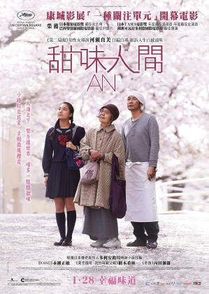 康城影展 一種關注單元 開幕片多倫多電影節導演河瀨直美過往多拍原著劇本,這次罕有改編多利安助川的同名小說。繼《第二扇窗》(第11屆),河瀨直美貫徹對社會邊緣人物的關注,還首次在東京拍攝,有別於過往作品大都發生在家鄉奈良縣。故事講述樹木希林飾演的老婦一天來到一家銅鑼燒店,請求永瀨正敏飾演的燒餅師父讓她做餅,原來她是燒餅高手,她的銅鑼燒吸引熟客和慕名而來的顧客,包括內田伽羅(現實中樹木希林的外孫女)飾演的內歛少女。本來陌生的三個人合力賣餅,儼如三代同堂的一家人。可惜當顧客得知老婦其實是附近痳瘋病院的病人,紛紛避之則吉,不敢光顧。最終燒餅店還容得下老婦嗎?樹木希林把一個坦然面對人生桎梏的角色賦予生命的韌力,不動聲色地觸動觀眾淚腺之餘,不忘留下溫暖的安慰。