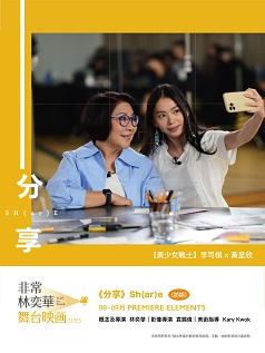 「經驗是無價的。她們於文化、於電影,都值得分享更多更多!」——林奕華 發想於林奕華的文化保育願景,為演藝生涯媲美「文獻」的香港女演員金燕玲、李司棋、張艾嘉,製作一系列深度訪談。作為前輩的她們,對於中生代的後輩女演員們,可會是永遠的繆思?例如,身兼母親與演員之職的黃詠詩,由唱歌開始再走上演員之路的張國穎,和精神上是美少女戰士的黃呈欣。 採用一鏡到底的拍攝方式,實時對話,實時記錄,並在四機拍攝下,隨著鏡頭的即興性移動,通過不斷轉變的影像構圖呈現訪問者與受訪者如萬花筒般的關係演進。由林奕華在其中穿針引線,為「分享」的當事人與各位旁觀者提供更多聆聽和觀察的提示與角度。 以往只適合在小屏幕上觀看的「對談」,轉化成屬於大銀幕的Cinema。銀幕上的《分享Sh(ar)e》將是很特別的一次觀影——試問我們會有多少機會可以如此近距離和無添加地看到金燕玲X黃詠詩、張艾嘉X張國頴、李司棋X黃呈欣,做自己、講自己、和分享自己? 概念及導演 林奕華 影像導演 袁錦倫 @Gain Production 美術指導 Kary Kwok