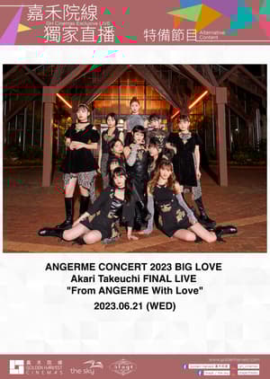 隊長再見! 「ANGERME CONCERT 2023 BIG LOVE 竹内朱莉 FINAL LIVE "From ANGERME With Love"」已確定於嘉禾院線進行獨家直播。 ANGERME隊長竹内朱莉將於舞台與大家道別,全團員亦將出席竹内朱莉表演,感謝fans多年的支持。來大銀幕與隊長好好道別,為竹内朱莉未來發展送上最大祝福吧! 片長時間只供參考,實際播出長度以現場直播為準。