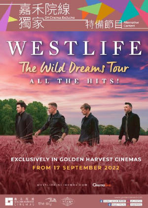 21 世紀英國最暢銷專輯組合Westlife 於 2022 年 8 月首次於溫布萊球場舉行演唱會,這是他們迄今為止規模最大、最具歷史意義的演出,門票亦火速售罄! Westlife出道20年,坐擁14首全英單曲冠軍的紀錄,專輯全球銷量超過五千五百萬張。Westlife在這個萬眾期待的Wild Dreams 巡迴演唱會中,演繹了所有熱門歌曲,包括“Uptown Girl”、“ Flying Without Wings”、“ You Raise Me Up”和“If I Let You Go”,為歌迷帶來了一個難忘的夜晚。 愛爾蘭萬人迷 Shane、Nicky、Mark 和 Kian 誠邀歌迷到戲院,親身感受這場不容錯過的音樂會!