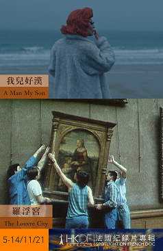 影片名稱:我兒好漢語言:法語(中文、英文字幕)級別:-片長:34分鐘導演:古魯演員:Jean-Marie Gouëlou, Florent Gouëlou, Calypso Baquey, Harald Marlot, Romain Eck故事:變裝皇后佛烈德任職電影放映師。只懂數碼放映的他請出早已退休的父親放映老舊的菲林片,兩父子在前往放映地點的旅程上,逐漸解開多年的心結。影片名稱:羅浮宮語言:法語(英文字幕)級別:-片長:85分鐘導演:尼古拉斯菲利普演員:-故事:上世紀八十年代,法國羅浮宮經歷大規模擴建,本片記錄了過程中博物館人員的日常工作。由親力親為佈展的策展人,到洗刷玻璃金字塔的清潔工,從修復藝術品到防火訓練,博物館展覽背後的面貌逐一呈現。