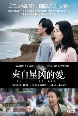 《東京奏鳴曲》《身後戀事》黑澤清回歸其拿手驚悚片,這次以潛伏在身邊的外星人為題,拍出隱藏在日常中的焦慮不安。故事改編自劇作家前川知大的舞台劇,松田龍平飾演的丈夫在某日散步時無故失蹤,回來後判若兩人,怪異的行為舉止令老婆長澤正美不知所措。原來外星生物派了三名隊員來地球盜取人類腦中的概念及準備進行大規模侵略!恐婚、災變、外星人等等威脅,顯而易見,卻被視而不見,黑澤清深層次反映日本人對危機的潛意識恐懼,電影入圍康城影展一種關注單元。