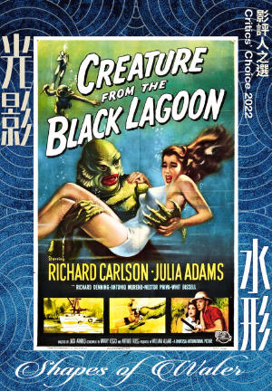 導演:積克阿諾德 故事:Maurice Zimm 編劇 :Harry Essex、Arthur A. Ross 攝影 :William E. Snyder 剪接:Ted J. Kent 演員Cast:Richard Carlson、Julie Adams、Richard Denning 天一生水,地二生火,萬物滋長,生死循環。黑湖妖在水中無前因無源頭的湧現,既是人類對溺水的恐懼的具象,也是水勢無定形的創造力隱喻,積阿諾導演這部怪物恐怖片本意只為嚇人,卻成為後世各種與「水」相關的災難片以及美人魚電影的靈感來源,浪流淹殺人命,波光蕩漾春心。戴拖路拍《忘形水》(2017)將黑湖妖對女主角莫名其妙不由自主的迷戀改寫為同是天涯淪落人的浪漫,其實《黑湖妖潭》更微妙的是對男女胴體的禮讚,迷幻的水底攝影展現的不單是神秘與陰森,也是肌肉的力量與潛游的舞姿,絕對會看得觀眾心浮意動。