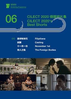 國際影視院校聯會創立於1954 年法國康城,至2020 年,已有來自65 個國家、超過180間影視教育院校加入。本節目將放映《高球姊妹花》、《試鏡》、《十一月一日》及《他人之胎》。影片名稱:高球姊妹花語言:菲律賓語(中文、英文字幕)級別:--片長:24分鐘導演:Rafael MANUEL演員:--影片名稱:試鏡語言:英語、匈牙利語(中文、英文字幕)級別:--片長:28分鐘導演:Sándor CSOMA演員:--影片名稱:十一月一日語言:英語(中文、英文字幕)級別:--片長:25 分鐘導演:Charlie MANTON演員:--影片名稱:他人之胎語言:西班牙語(中文、英文字幕)級別:--片長:13分鐘導演:Samanta BIANUCCI演員:--