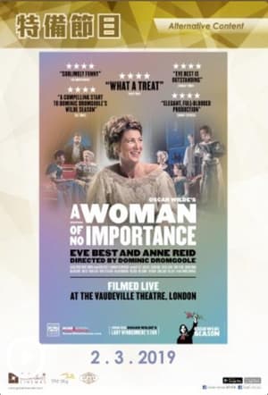 ★ 人氣舞台劇現場錄播 搬上大銀幕 「現在一切都能倖存下來,除了死亡和活在敗壞的聲譽之中。」 — 愛爾蘭著名作家王爾德(Oscar Wilde) 由莎士比亞前藝術總監Dominic Dromgoole執導,奧利花獎(Olivier Awards)得主Eve Best及又名「英國奧斯卡」之英國電影及電視藝術學院大獎(BAFTA)提名女演員Anne Reid演出之全新經典 — 著名作家王爾德全新作品《無關重要的女人》(A Woman of No Importance)。2017年11月於倫敦西區劇院現場錄影並於多間戲院直播。 當認真熱心的年輕美國女子、英國貴族以及無辜的年輕人,於19世紀末一同參加了一個怪誕的家庭聚會。附近還住着一名埋藏秘密的神秘女子。 劇場演出於1893年首演,19世紀唯美主義代表、愛爾蘭著名作家王爾德(Oscar Wilde)將閃閃發光的人生睿智和易卜生派戲劇完美結合,諷刺維多利亞時代上流社會的保守世界,創造了一種生動的新銳戲劇類型,至今仍引起共鳴。