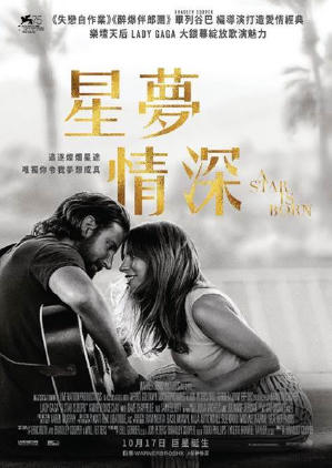 畢列谷巴係超級型男,我最喜愛嘅外國明星之一,今次拍住Lady Gaga,在片中演一個失意音樂人,浪漫深情而帶著塵世悲傷,令我印象特別深刻。Lady Gaga 嘅演出亦係出乎意料亮麗,冇得彈👍。戲中好幾首歌都動聽 ,Lady Gaga 一曲 I ‘ll never love again 簡直有如天籟,人間那得幾回聞,佢演與唱俱佳,唔入戲院欣賞係一損失。