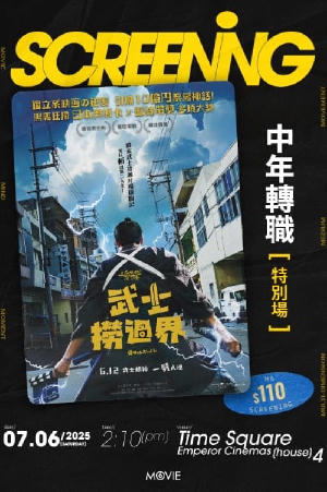 𝗺𝟲 𝘀𝗰𝗿𝗲𝗲𝗻𝗶𝗻𝗴 𝟰𝟬 ➤ 《武士撈過界》中年轉職特別場 日期:2025 年 6 月 7 日(六) 時間: 2: 10 pm (House 4) 地點:Emperor Cinemas Times Square 票價:$110 隨票禮品: 🎁 m6電影收藏卡 🎁 官方電影明信片(隨機1張) 〔 購票注意 〕 ① 電影開始前 1 小時開始派發實體票及禮品。開場後將停止派發。 ② 購票後,如當日未能到場領取禮品,請於 6 月 14 日前將以下資料發送至 [email protected] : ⠿ 購票時所使用的電郵址 ⠿ 購買的座位編號 ⠿ 郵寄資料(姓名+電話+郵寄地址) 我們將安排順豐到付寄送,程序需時約 14-30 個工作天,請耐心等候,逾期恕不補發。 幕末武士高坂新左衛門(山口馬木也 飾),在一場激戰中意外被雷電擊中,竟一劍劈開百年時空,穿越至現代日本,誤闖入時代劇片場,陰差陽錯下被當成臨時演員!深明太平盛世不再需要戰鬥的他,卻發現自己除了一身劍術外,別無所長。為免餘生碌碌無為,高坂毅然選擇「中年再就業」,轉行成為一名專門在戲劇中「畀人斬死」的臨記武師!本以為就此安穩過日,誰知幕末未了的宿命,仍有未解的秘密等待揭曉……
