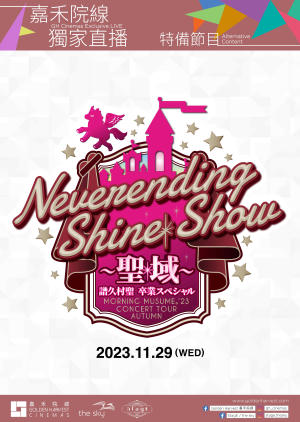 「D2-早安少女組'23秋季巡演-"Neverending Shine Show ~Sanctuary~ 譜久村聖 卒業演唱會」 已確定於嘉禾院線進行獨家直播! モーニング娘。'23 (Morning Musume。'23) 今年9月開始,於日本展開了為期兩個月的 "Neverending Shine Show"秋季巡迴演唱會。而現任隊長譜久村聖確定11月29日於橫濱競技場舉辦的巡迴演唱會最終場中,正式畢業! 譜久村聖的Fans們把握機會,於大銀幕同步應援,為隊長迎接新的人生旅途送上最大祝福! 片長時間只供參考,實際播出長度以現場直播為準。